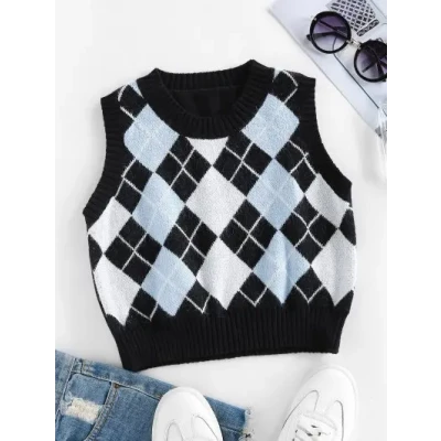 ZAFUL Argyle Rib Trim Crop Sweater Vest