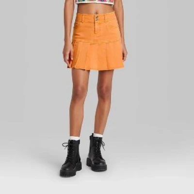 Jean miniskirt from Wild Fable™ designed with a plain top half and a knife-pleated hemline. Made from cotton with spandex for flexible, breathable all-day comfort. Tailored in a regular fit with a mid-rise silhouette for comfort, plus a wide waistband with belt loops and a fly zipper with two-button fastening keep it in place. Two front pockets and a coin pocket complete the design with functional flair. If you’re not satisfied with any Target Owned Brand item, return it within one year with a receipt for an exchange or a refund. Wild Fable™: A look for every story.